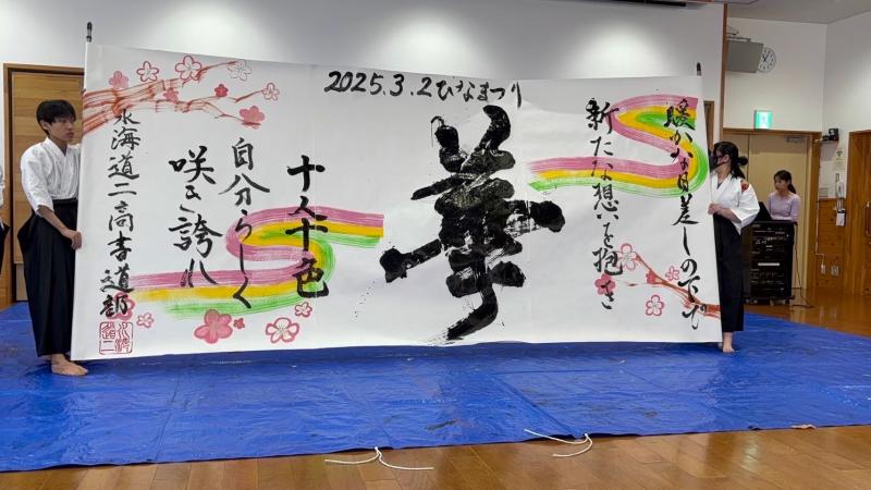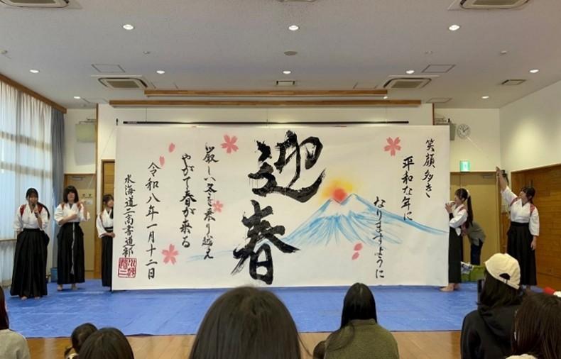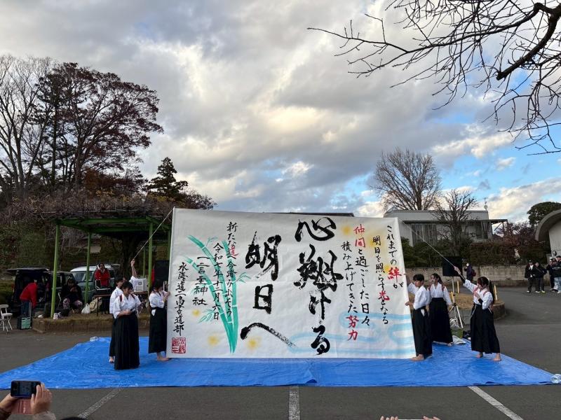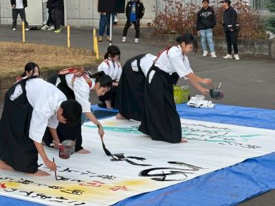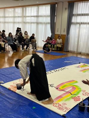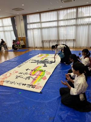 3年生の最後のパフォーマンスでした。年末ということで新たな年を迎える希望と3年生の門出を応援する気持ちを込めて揮毫しました。