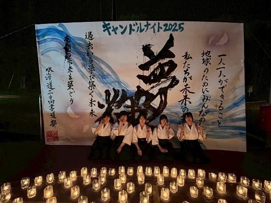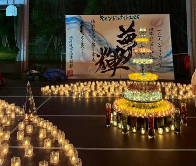 ペットボトルを再利用したろうそくに火を灯し、参加者が環境保全や持続可能な社会に想いを馳せるイベントでした。テーマに沿った文字を揮毫しました。