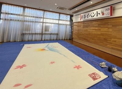 新春をテーマに作品を揮毫しました。パフォーマンス終了後はコミュニティセンターロビーに1か月間作品を飾っていただきました。