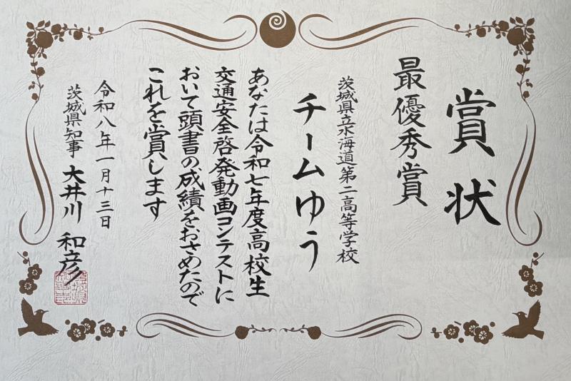 令和7年度高校生交通安全啓発動画コンテストにおいて、本校商業科の生徒が応募した作品が、最優秀賞と優秀賞を受賞しました!
