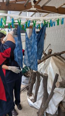 家政科3年生、最後の授業で作品のジャケットを着用して記念撮影。特殊素材で“つけ襟”“ポーチ”も製作♡