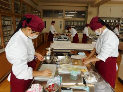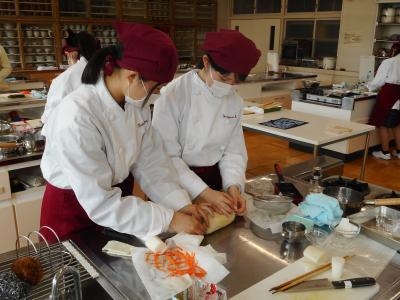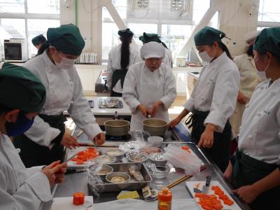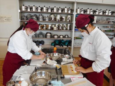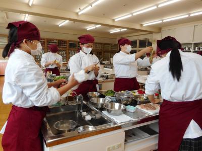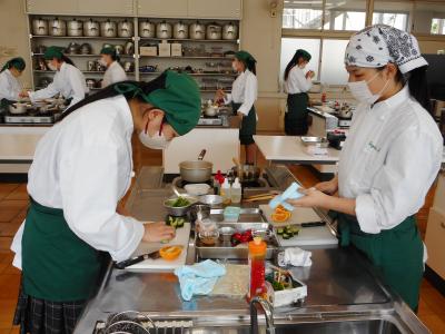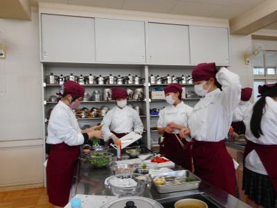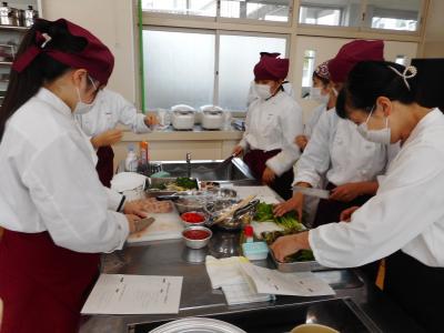 内容:第2学年家政科「食物調理技術検定1級及び2級に対応する弁当調理と供応食の調理」