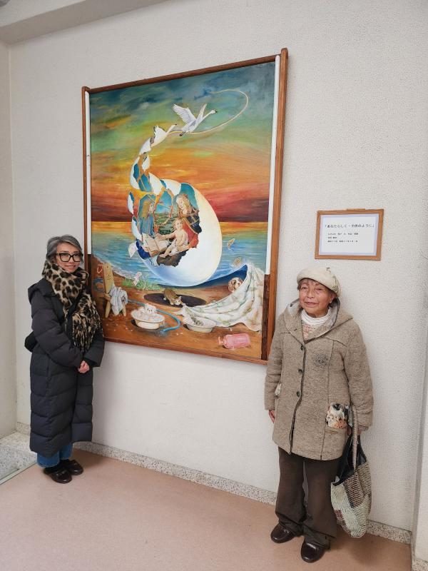 2026.2.12 卒業生のながはま様が来校されました(ご寄贈絵画「あなたらしく・子供のように」)