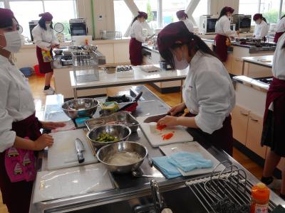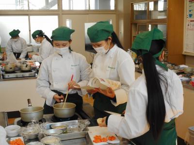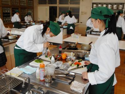 2年生家政科の生徒を対象に、ものづくりマイスター派遣事業「料理講習会」を実施しました。