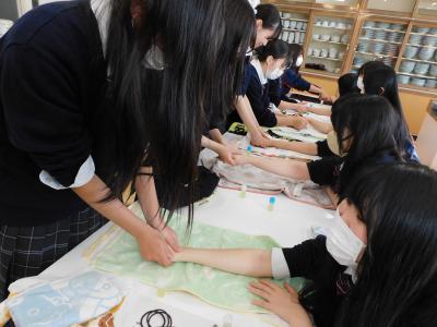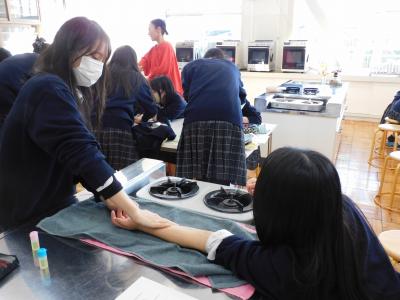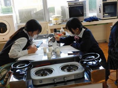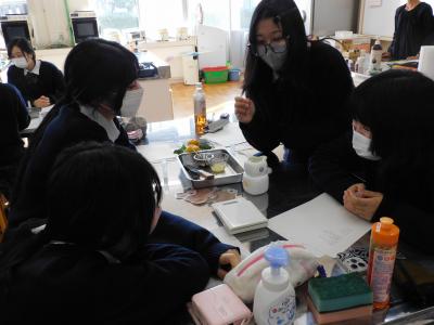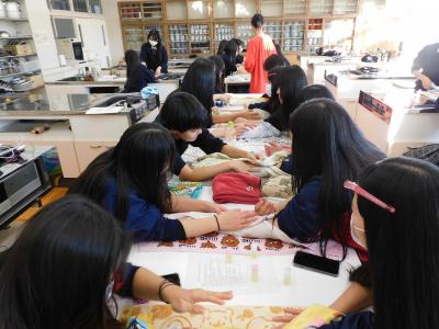近隣高校の2名の先生方が、研修のために家政科の座学と実習の授業を視察されました。