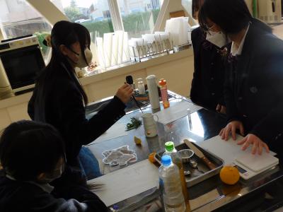 12月16日(火)、家政科3年生を対象に、講師の先生をお迎えして、第2回アロマオイル体験授業を実施しました。